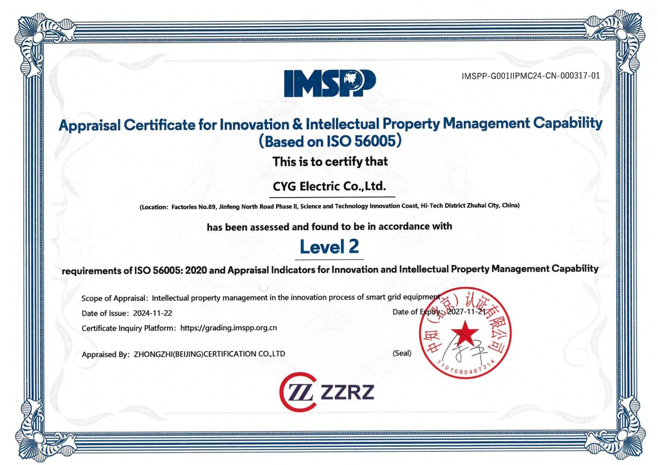 CYG Electric Achieves Level 2 Certification in Innovation and IP Management in Zhuhai